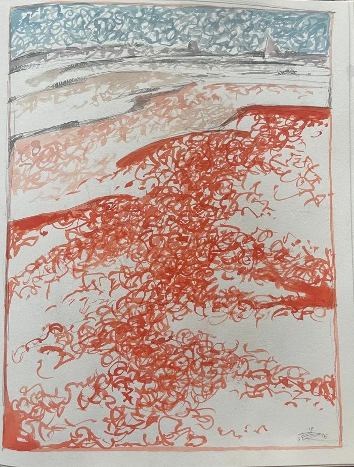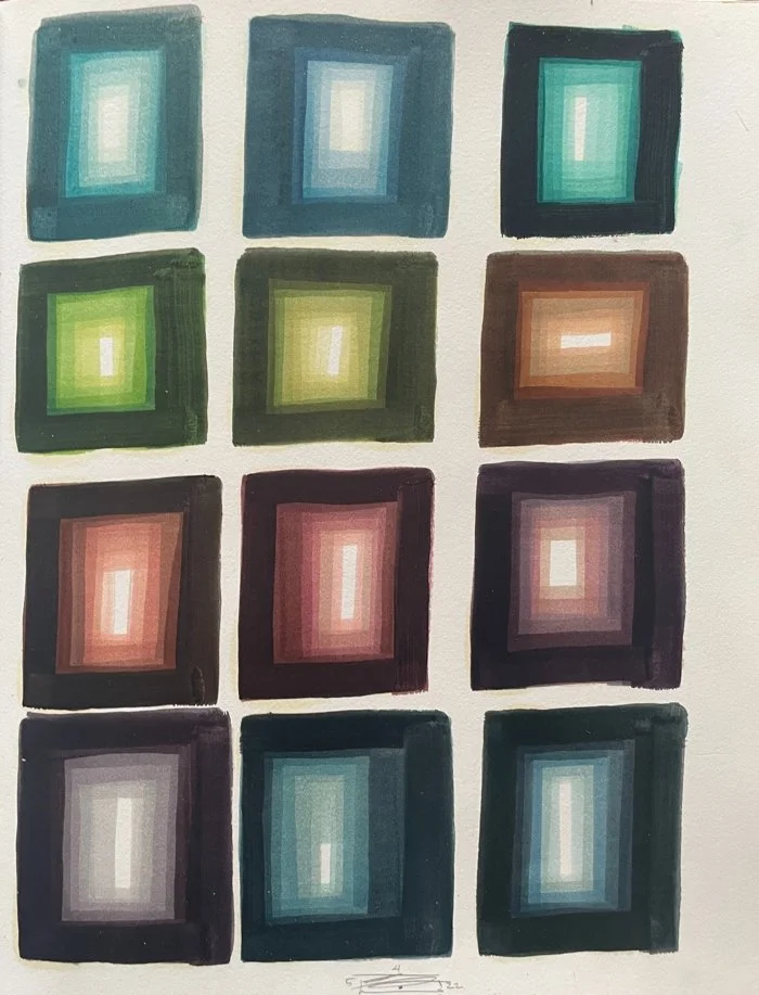 Finduilas is a large hand-made sketchbook with heavy weight Strathmore paper intended for pencil or watercolor. At first, I was using it on the rare occasions that I indulged in weed. But then I started doing abstract paintings in 2015, and it was perfect for small watercolor sketches. It’s damned near full now.
