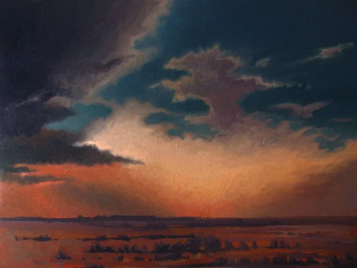 A Low Red Hum - 18in x 24in, 46cm x 61cm, Oil on Panel, 1900USD