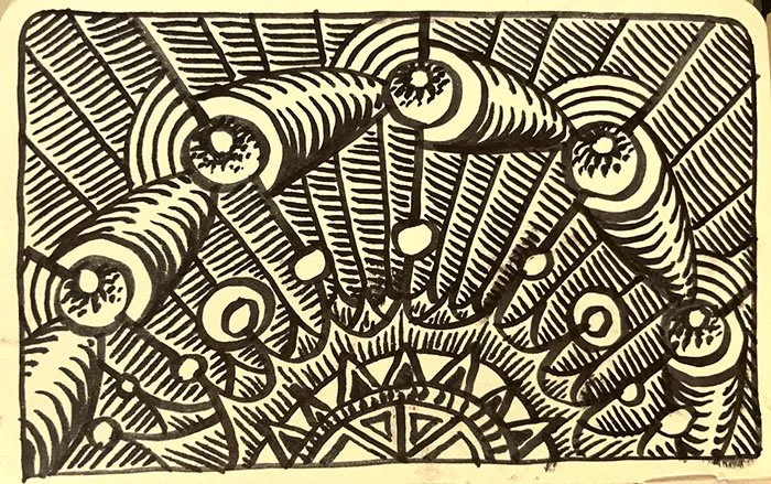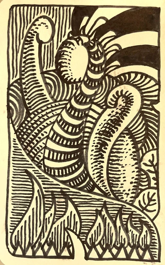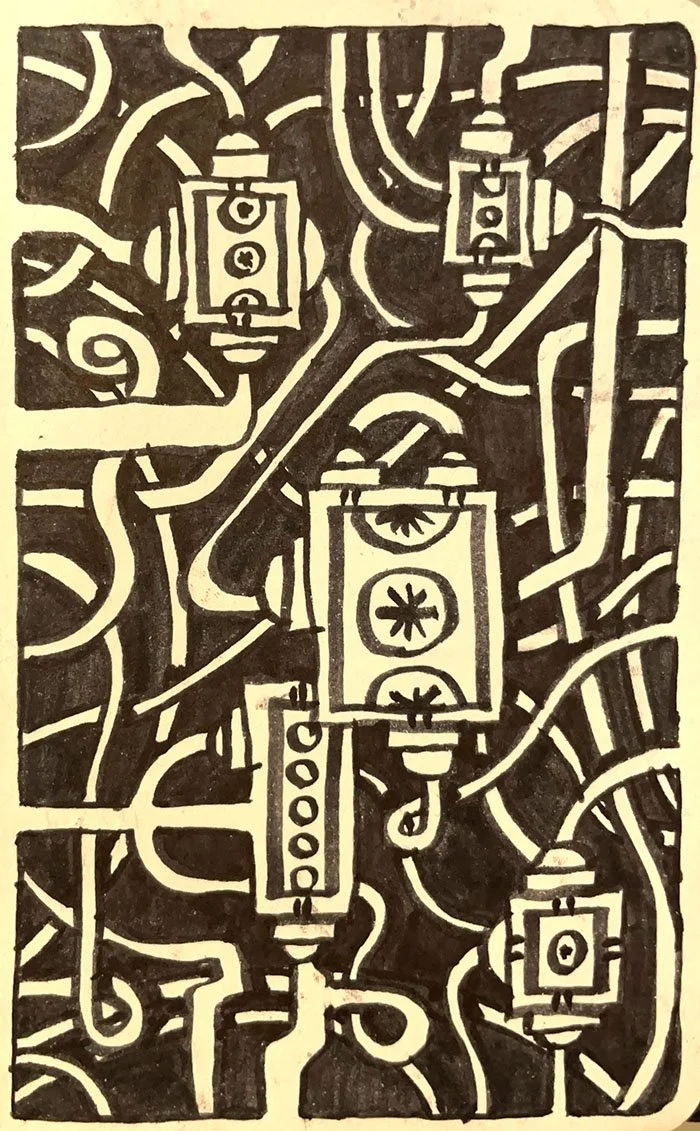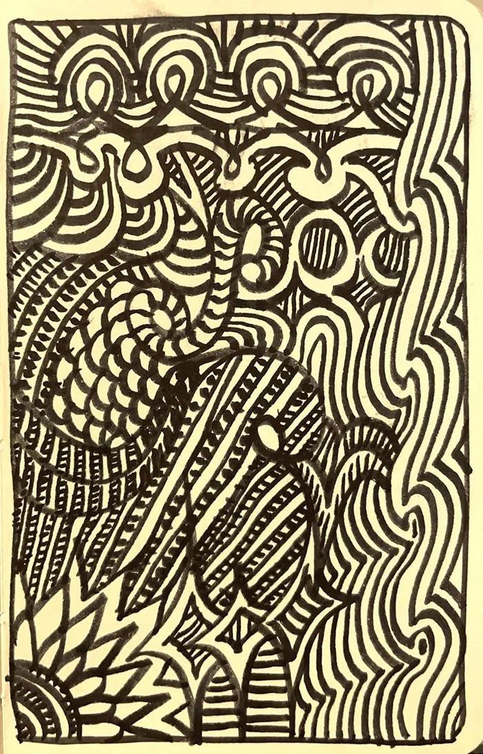 Vingilot is a small moleskine sketchbook that I consider one of my “Books of the Corporate Dead”, that is, it’s a sketchbook I worked on while in meetings at my day job. It’s primarily doodles, really.